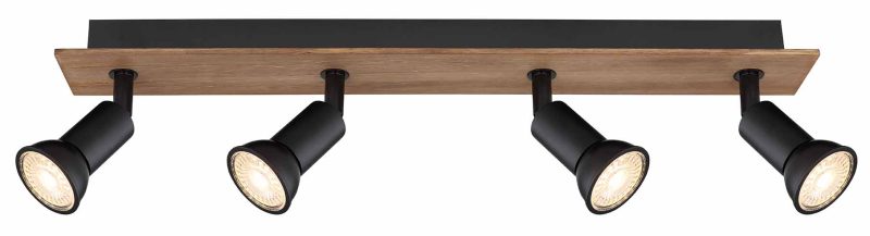 Contient le magnifique plafonnier de la série Drew. Avec sa fonction rotative, combinée à un mélange de métal et de bois, il offre une allure luxueuse dans chaque pièce. Grâce aux quatre douilles GU10, vous pouvez régler vous-même l’intensité et la teinte de la lumière, avec une puissance potentielle allant jusqu’à 35 watts. Sujet à l’économie d’énergie ? Optez pour des ampoules LED, idéales pour leur durabilité et leur efficacité.