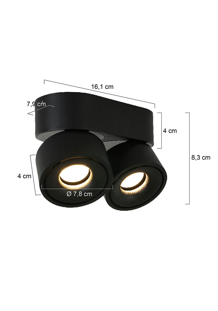 Le spot à 2 lumières de la série Fez de Mexlite offre une solution d’éclairage moderne et flexible. Les modules LED intégrés de 8 watts par spot ont un rendement lumineux de 2 x 700 lumens et une température de couleur chaude de 2700 Kelvin. Les spots sont individuellement rotatifs et inclinables, vous permettant d’orienter la lumière exactement où nécessaire. Dimmable avec un variateur externe (non inclus). Les modules LED fixes peuvent être remplacés par le fabricant.