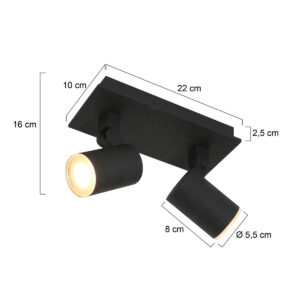 Le spot encastré à 2 lumières Noirs combine éclairage pratique et design épuré. Les deux spots sont rotatifs et inclinables, vous permettant d’orienter les faisceaux lumineux exactement comme vous le souhaitez. Les ampoules GU10 fournies ont une fonction dim to warm, permettant d’ajuster la couleur de la lumière de 2200 à 2700 Kelvin. Avec une largeur de 22 cm, ce spot s’intègre parfaitement dans des intérieurs modernes.