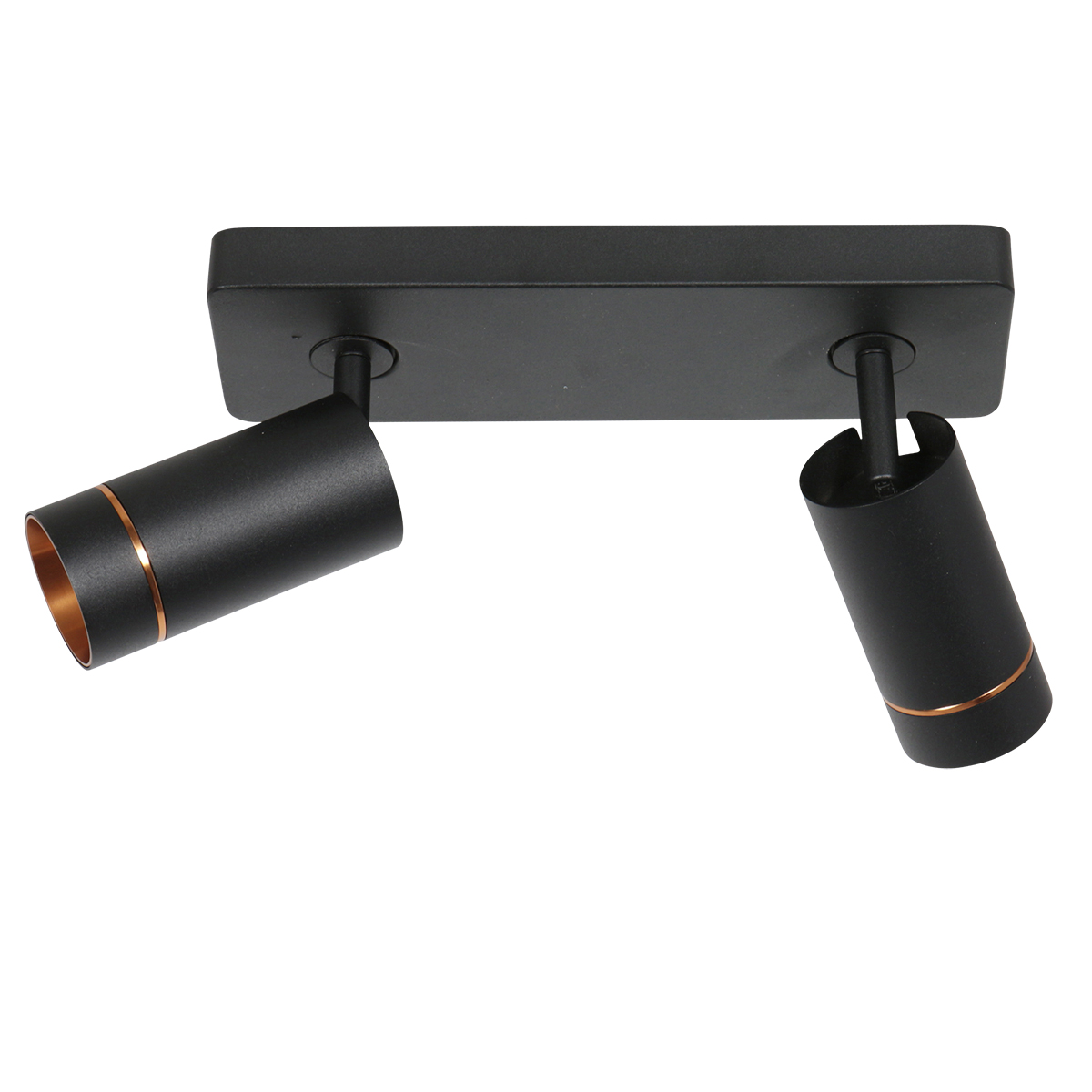 Spot noir à 2 lumières avec des détails dorés et GU10 Steinhauer Downlume