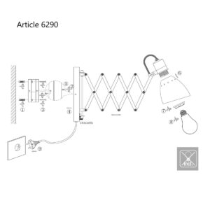 La lampe est très adaptée comme lampe de lecture. La lampe dispose d’un mécanisme à ciseaux, ce qui rend la lampe parfaitement réglable. Grâce à sa couleur acier, la lampe s’intègre bien dans un intérieur moderne. Le spot est équipé d’un douille E27 classique. Le variateur rotatif se trouve sur la plaque murale. Le branchement est très simple. Cette lampe à ciseaux est en effet dotée d’un long cordon avec prise.