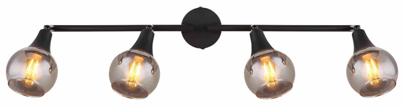 Ce spot élégant et moderne, fabriqué en métal noir mat, verre fumé et métal doré brossé, est un atout pour tout intérieur. Avec des dimensions de 600x90x168mm, il n’est pas seulement généreux en taille, mais aussi incroyablement flexible – les spots peuvent être alignés selon vos souhaits pour une distribution lumineuse idéale. Le spot fonctionne avec quatre ampoules E14 d’un maximum de 40W sous une tension de 230V, attention : ces ampoules ne sont pas incluses. Cette pièce maîtresse de haute qualité de finition transforme chaque espace en un environnement moderne et lumineux. Vivez-le par vous-même!