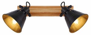 Alliez le style industriel et l’élégance avec le spot à deux lampes « GÜNTHER ». Cette lampe dispose d’un support mural en bois et de deux abat-jours en métal noir mat avec un intérieur doré éclatant (L: 38cm, H: 24cm). Adaptez la douille E27 selon vos goûts avec des ampoules jusqu’à 60 watts pour créer la couleur et l’intensité lumineuse idéales.