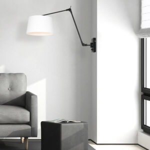 Cette lampe murale allie la solidité industrielle à une atmosphère douce et accueillante. L’abat-jour en lin blanc filtre la lumière de manière agréable, tandis que le cadre en métal noir offre un aspect moderne et robuste.