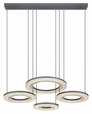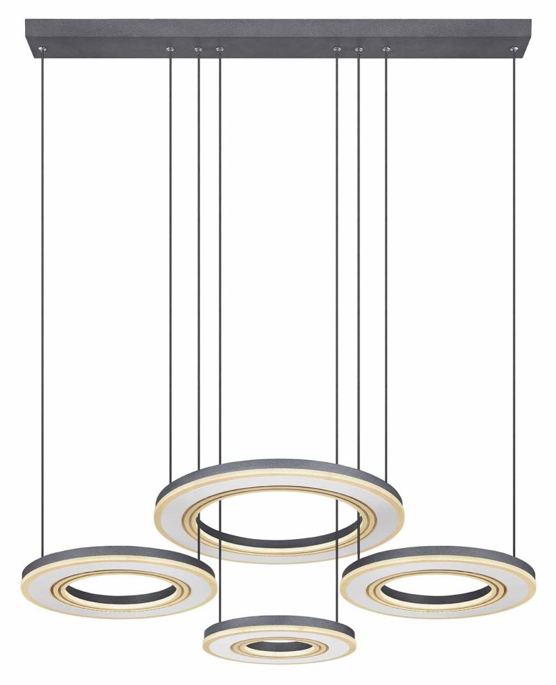 Ajoutez une touche élégante à votre espace de vie avec le luminaire suspendu Blasius au design moderne. Cette lampe de plafond unique, finie dans des teintes de noir et de blanc, est fabriquée à partir de quatre anneaux métalliques de formes différentes, éclairés par un ensemble de lampes LED avec une sortie de 2765 lumens. Il est particulièrement remarquable de pouvoir régler la chaleur de la lumière, allant du blanc chaud au blanc froid (2700-6000 Kelvin), ainsi que les options de variation d’intensité et une fonction de veilleuse, le tout accessible via une télécommande pratique. La hauteur de suspension est réglable jusqu’à 120 cm lors du montage, et d’autres modèles de la série Blasius peuvent être intégrés de manière transparente pour un rendu harmonieux dans chaque espace.