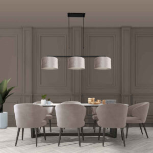 Les trois abat-jours en velours gris de 30 cm donnent à la lampe une allure chic qui s’intègre facilement dans des intérieurs modernes. Cette lampe est un choix parfait pour ceux qui recherchent un éclairage élégant et contemporain. Cette suspension est livrée avec 2 ans de garantie.
