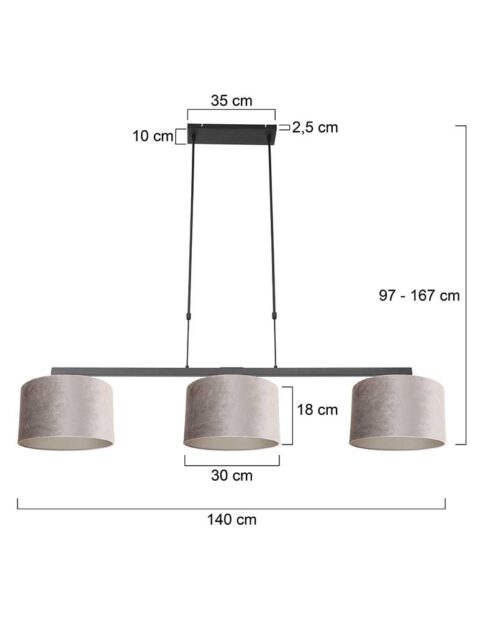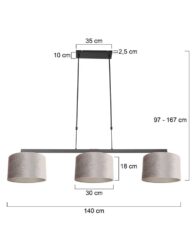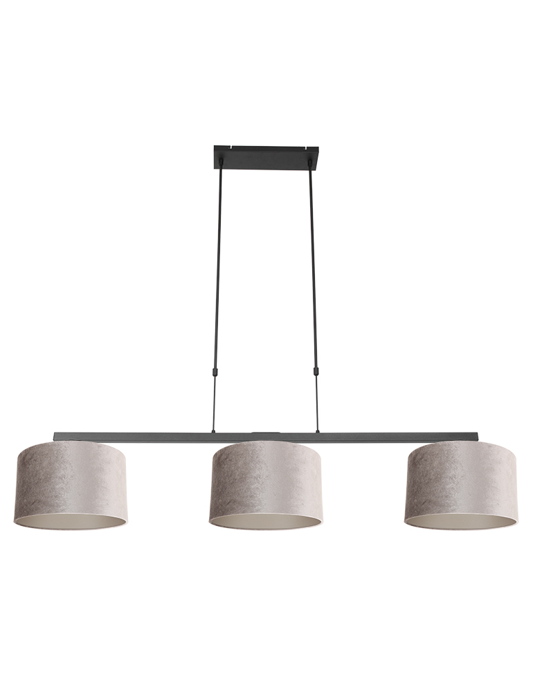Les trois abat-jours en velours gris de 30 cm donnent à la lampe une allure chic qui s’intègre facilement dans des intérieurs modernes. Cette lampe est un choix parfait pour ceux qui recherchent un éclairage élégant et contemporain. Cette suspension est livrée avec 2 ans de garantie.