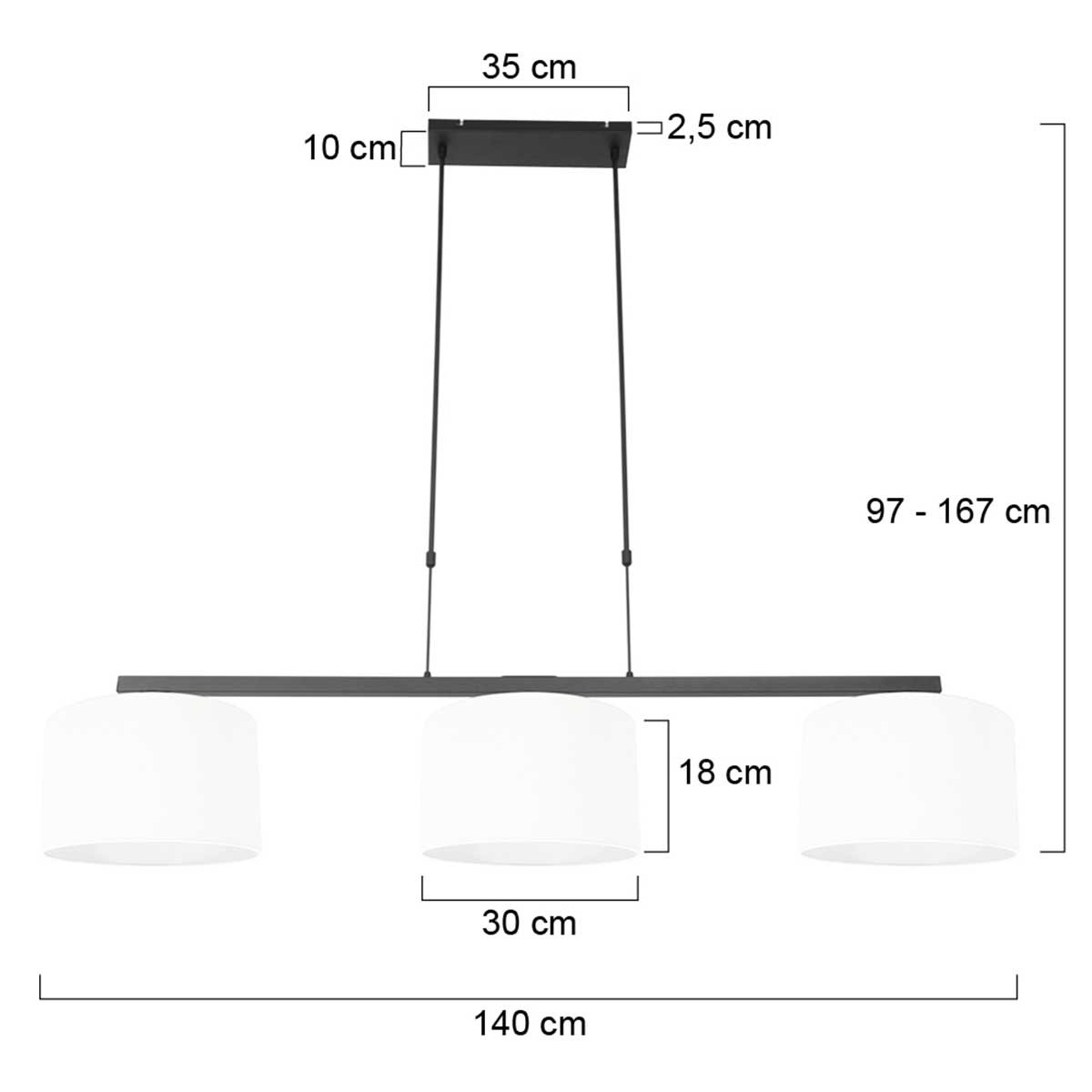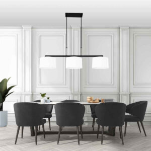La lampe est fournie avec trois abat-jours en lin blanc de 30 cm, ce qui lui confère une apparence intemporelle et élégante. Que vous optiez pour un éclairage d’ambiance dans le salon ou au-dessus de la table à manger, cette lampe suspendue offre le parfait équilibre entre style et fonctionnalité. Cette lampe est livrée avec une garantie de 2 ans.
