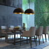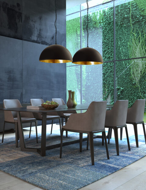 La lampe suspendue double de la série Semicircle a une largeur totale de 120 cm et deux abat-jours d’un diamètre de 35 cm. L’intérieur est fini avec un film doré pour une ambiance chaleureuse. Équipée de deux douilles E27 et adaptée aux sources de lumière jusqu’à 40 watts par abat-jour (non incluses). Les chaînes de suspension peuvent être raccourcies lors du montage jusqu’à un maximum de 160 cm. Dimmable avec un variateur externe et une source de lumière dimmable.