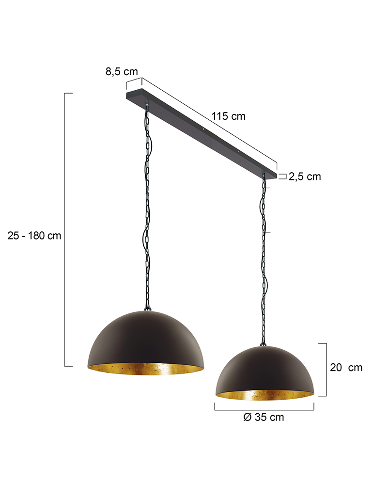 Double suspension demi-sphère Steinhauer Semicirkel noir et dorée