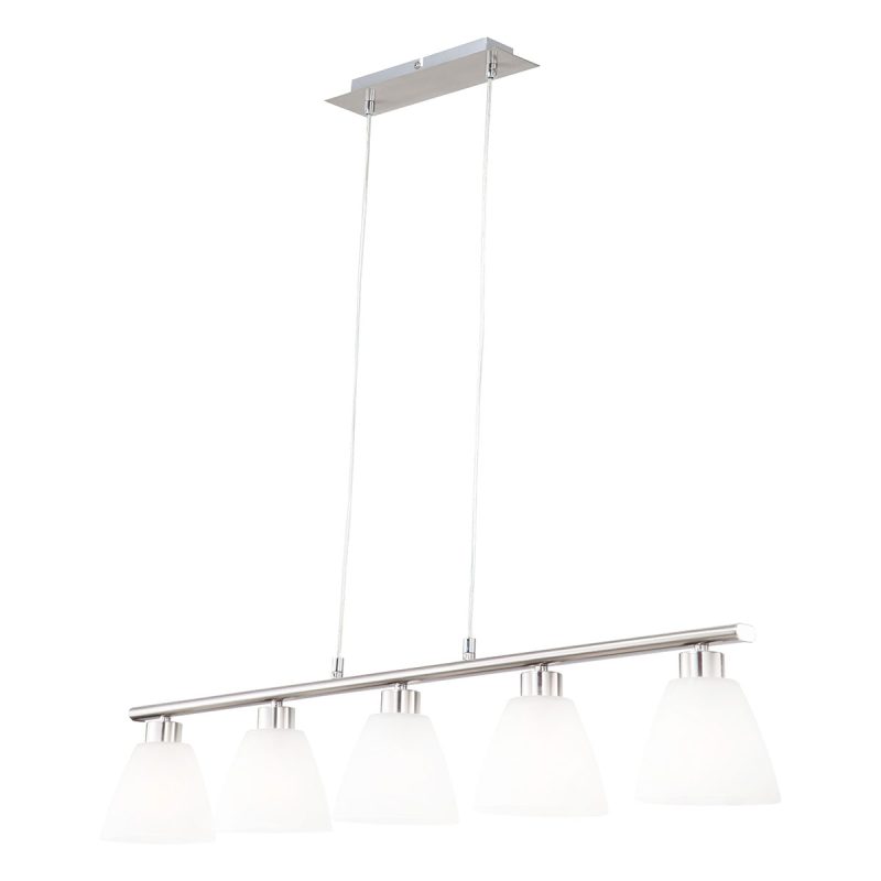 Suspension allongée 5 abat-jours nickel verre d’albâtre Globo Illimani