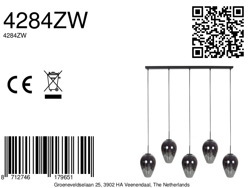 La lampe est livrée avec cinq verres coniques dans une couleur fumée élégante. Chaque verre a un diamètre de 22,5 cm et une hauteur de 33 cm, offrant une émission de lumière chaleureuse avec une touche luxueuse et mystérieuse. La plaque de plafond de 110 x 8,5 x 2,5 cm est finement finie et facile à monter. Cette lampe suspendue atmosphérique fait partie de la série modulaire HaloSwap et se combine sans effort pour un ensemble harmonieux dans votre maison.