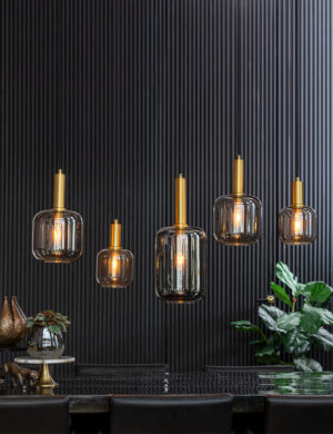 Nous sommes sûrs que votre journée est illuminée depuis que vous avez trouvé cette lampe. C’est le modèle “Lekar” de chez Light & Living. Cette lampe de table à manger est un très bel accroche-regard ! Cinq « sphères » en verre de différentes tailles sont suspendues à votre plafond à différentes hauteurs. Le verre des abat-jours est en verre fumé gris. Les supports de montage sont en or assorti. Votre couloir ou votre îlot de cuisine n’ont jamais été aussi parfaitement éclairés.