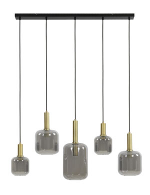 Suspension avec cinq verres Light & Living Lekar verre fumé