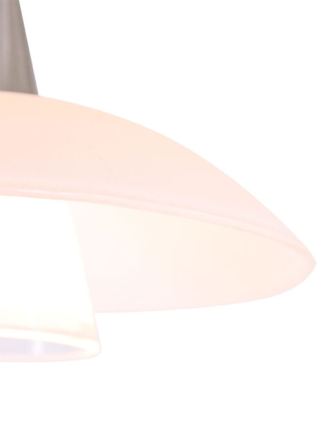 Voici encore un superbe lampadaire avec un grand facteur wow ! Steinhauer propose à nouveau un magnifique design avec le “Tallerken”. Ce qui frappe le plus avec cette lampe, c’est le plat en verre opale inversé. Le plat est suspendu à un élément conique chromé. Sous le plat se trouve un abat-jour en forme de pot de fleurs avec la source de lumière LED intégrée. Est-ce que “Tallerken” peut venir éclairer ta table à manger, ta table basse ou ton buffet ?
