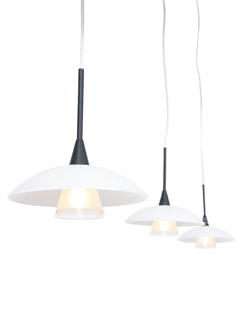 Suspension avec trois spots pendant Tallerken Steinhauer noir et blanc