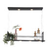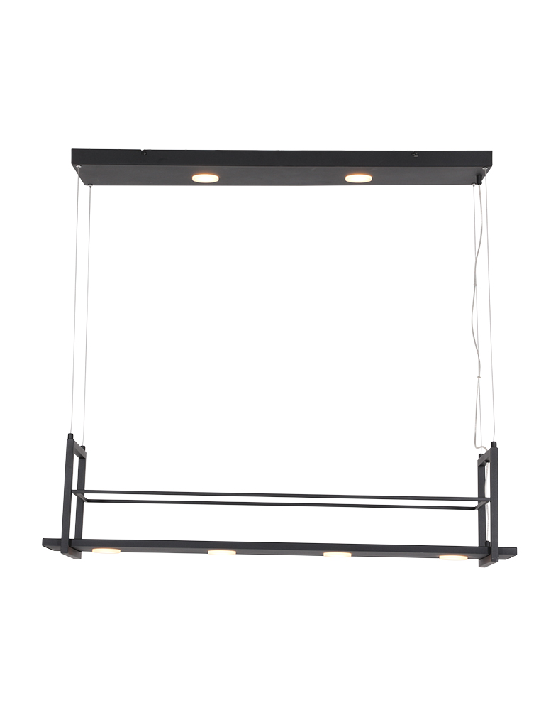 Le plafonnier Tor est un mélange parfait de fonctionnalité et de design. Avec une largeur de 100 cm et six points de lumière (4 en dessous et 2 au-dessus), cette lampe offre un éclairage optimal et un espace de rangement supplémentaire pour les épices ou les décorations. La température de couleur de 2700 Kelvin crée une ambiance chaleureuse, et la fonction réglable en hauteur (40-150 cm) rend cette lampe idéale pour diverses applications.