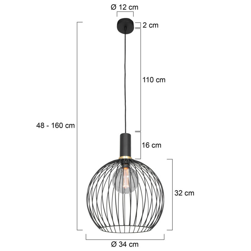 Voulez-vous un point focal dans votre hall ou votre salon ? Alors la suspension en métal Mexlite Aureole noire est la solution ! Cette suspension ronde est fabriquée en acier noir. Les arcs ronds se rétrécissent vers le haut. L’anneau doré en haut complète parfaitement cette lampe. C’est une lampe moderne avec de magnifiques détails. Grâce à son design ouvert, vous bénéficiez également d’une lumière chaude et abondante.
