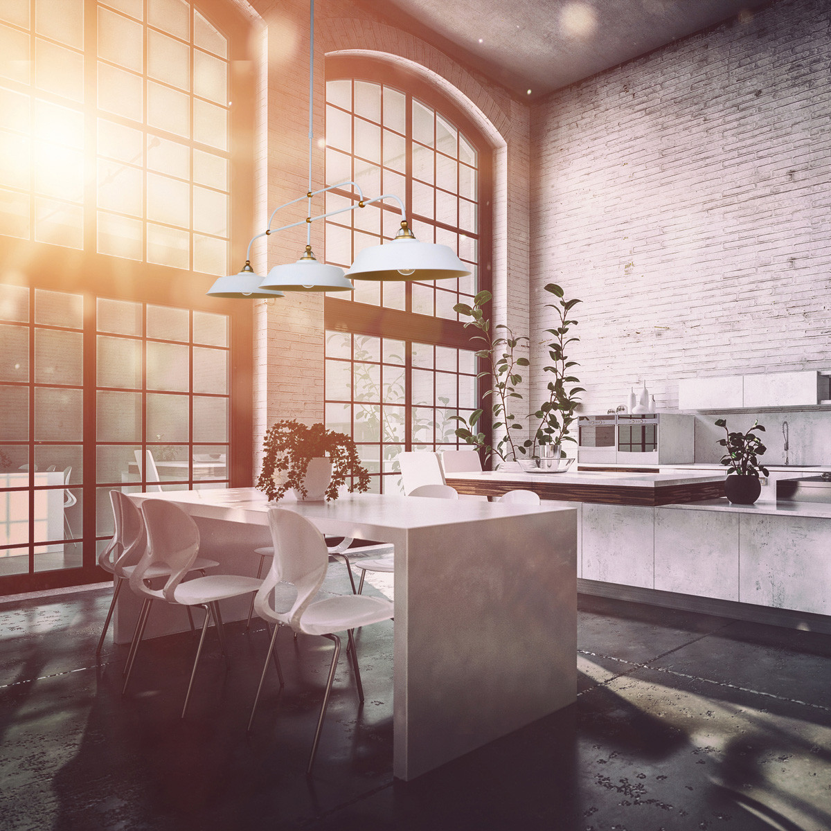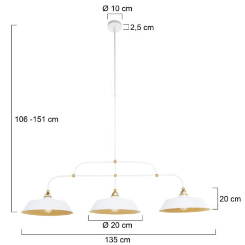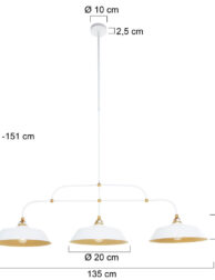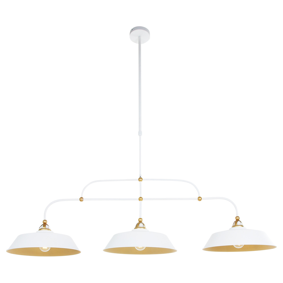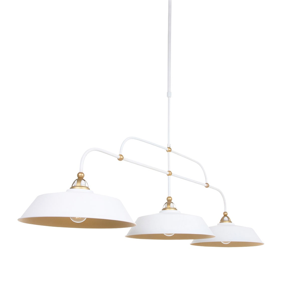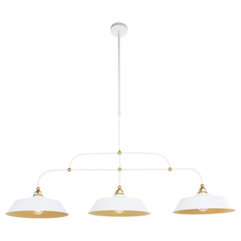 Suspension chic 3 lampes blanc et or en métal Mexlite Nové or et opaque