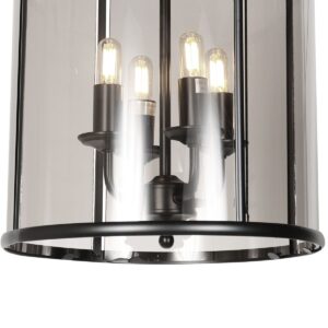 La suspension noire à 4 lumières de la série Pimpernel est le mélange parfait de classique et contemporain. Le cadre noir profond, associé au verre fumé subtilement teinté, assure une distribution de lumière chaleureuse et agréable. Parfait pour ceux qui recherchent un ajout stylé et intemporel pour la salle à manger ou un hall spacieux. La lampe est réglable en hauteur et équipée de quatre douilles E14, adaptées aux sources lumineuses jusqu’à 40 watts. Avec sa construction en métal robuste et sa finition raffinée, cette lampe est un véritable atout pour votre intérieur.