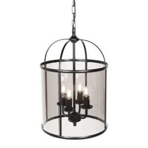 Suspension 4 lumières noire en forme de lanterne métal/verre Steinhauer Pimpernel