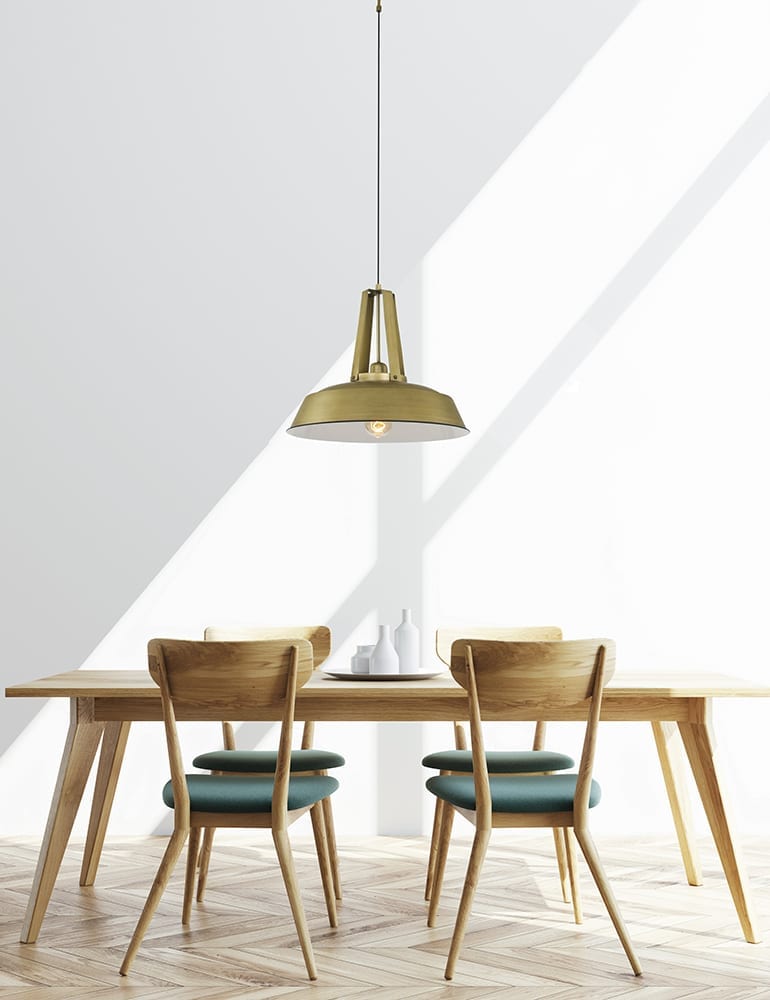 Le caractère intemporel de cette suspension de style industriel est sublimé par sa couleur dorée ainsi que par le soin apporté aux détails. La suspension Luna de chez Mexlite donnera une touche chaleureuse à votre décoration. La couleur or et la finition mate de l’abat-jour s’accordent parfaitement à tous les styles d’intérieurs, des plus sombres aux plus lumineux.