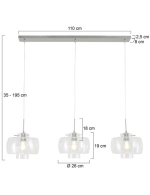 Suspension de table à trois lumières Steinhauer Glass acier