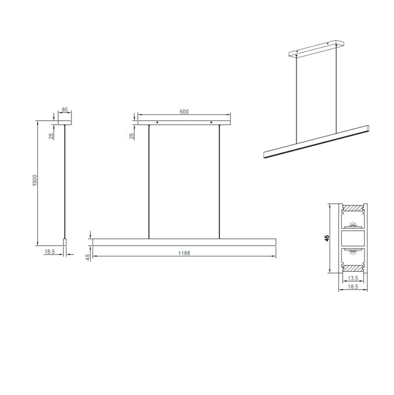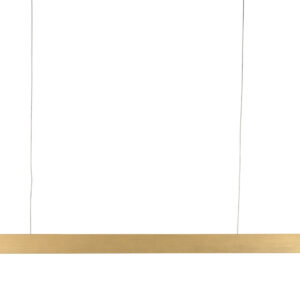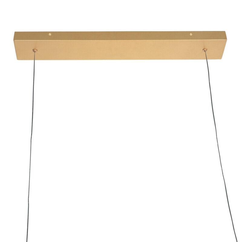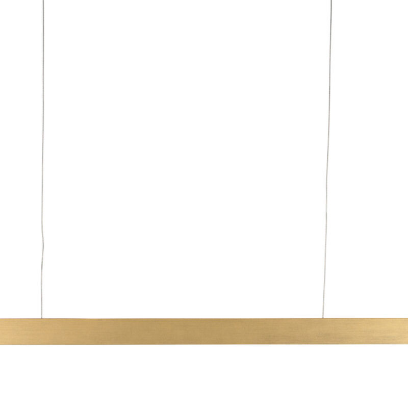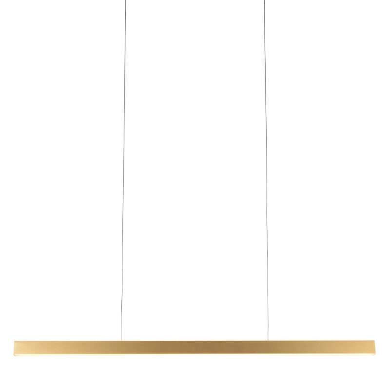 Le plafonnier BrightLine de la marque Mexlite allie un design épuré et minimaliste à une allure chaleureuse. Cette lampe au design doré mesure 119 cm de large, fait seulement 2 cm d’épaisseur et 5 cm de hauteur, et est suspendue à deux câbles en acier ajustables de 30 à 150 cm – idéal au-dessus d’un îlot de cuisine, d’une table à manger ou d’un bar dans un intérieur moderne.