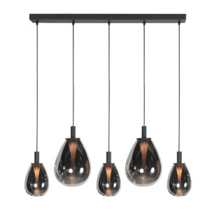 Suspension design noire avec 5 abat-jour en verre fumé Steinhauer Glimsy