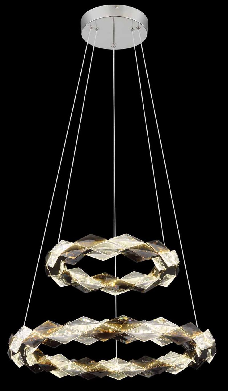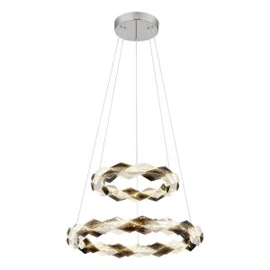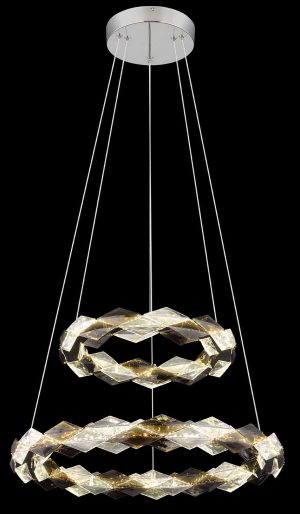 Suspension double couronne cristal acrylique chrome/gris fumé Globo Karilion