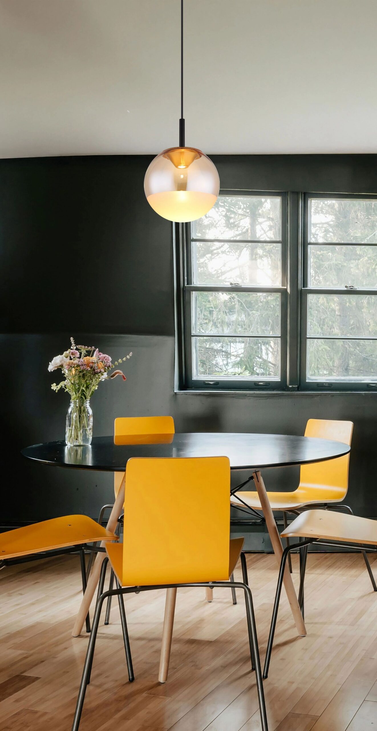 Suspension élégante avec boule en verre et cadre noir Severin