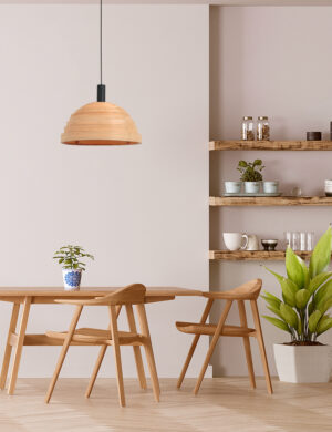 Avec la suspension Steinhauer Veneer en hêtre avec des détails noirs, vous apportez un peu de design scandinave chez vous. Cette lampe a un diamètre de 50 cm et une hauteur réglable de 40 à 165 cm, ce qui la rend polyvalente. Vous pouvez ajuster l’intensité lumineuse en fonction de l’ampoule choisie (ampoule non incluse). Fabriquée en bambou et en métal, cette suspension se distingue par sa durabilité. Elle se commande par un interrupteur mural et convient à une utilisation en intérieur (IP20). Pourquoi devriez-vous l’acheter ? Cette lampe allie l’ambiance scandinave et l’adaptabilité et apporte une touche de nature chez vous.
