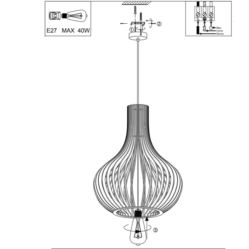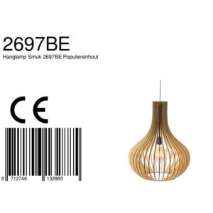 La suspension de la série Smukt est équipée d’une douille E27 et convient aux sources de lumière jusqu’à 40 Watts. La lampe est dimmable avec un variateur externe et une source de lumière appropriée. La hauteur est ajustable jusqu’à 190 cm maximum et l’abat-jour a un diamètre de 50 cm. Les panneaux en bois sont solidement collés au cadre pour une construction solide.