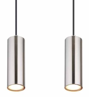 Envoûtez vos invités avec ce luminaire suspendu unique, caractéristique de son design saisissant. Quatre abat-jours cylindriques séparés, finis en nickel mat, contiennent chacun un support GU10 et pendent subtilement à 1,2 mètre du plafond par des câbles noirs épurés à un support de 65 cm de long. Vous avez une liberté totale pour choisir la source lumineuse à votre guise, tant que la puissance maximale de 35 watts n’est pas dépassée. Éclairez votre espace avec style et flexibilité.