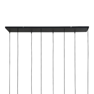 Cette suspension rectangulaire en métal noir Reflexion a incontestablement un effet wow. Sept globes en verre fumé, de différentes formes et tailles, sont suspendus côte à côte. Ils attirent votre regard avec leur lumière réfléchissante envoûtante ! Accrochés à des cordons élégants, ils sont disposés de manière ludique à des hauteurs inégales. La plaque de plafond rectangulaire en métal noir est simpliste. Reflexion donne un coup de fouet direct à une grande table à manger ou à un îlot de cuisine.