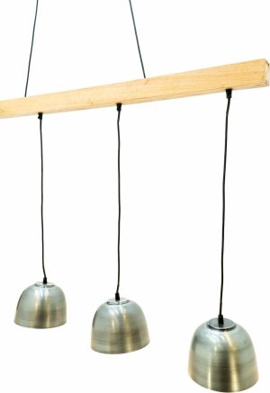 Embellissez votre intérieur avec cette suspension à deux câbles d’un élégant support de plafond vers une poutre en bois de 1,2 m. Quatre abat-jours en métal de couleur antique (Ø 18 cm) créent une lueur chaude et accueillante. Idéal avec des ampoules LED à faible consommation d’énergie.