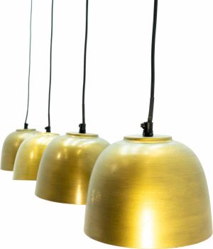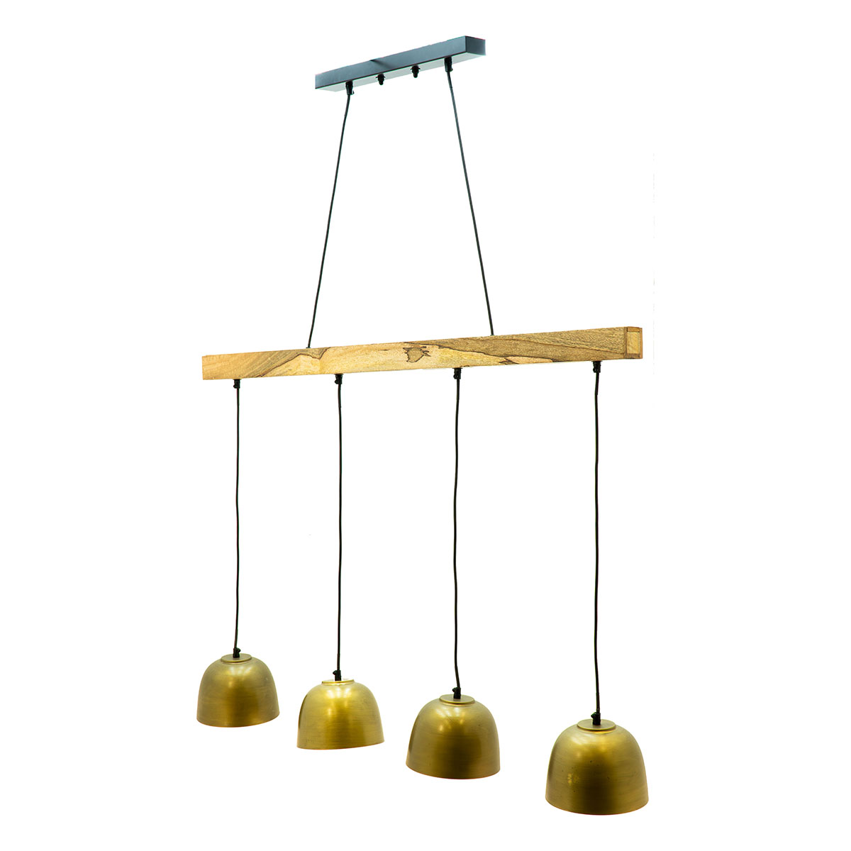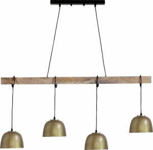 Découvrez la beauté de ce luminaire suspendu avec une base en bois et des abat-jours en métal élégant en vieux laiton. Quatre câbles torsadés de 1,2 m prolongent l’élégance vers chaque coin de la pièce, chacun portant un douille E27 pour un contrôle optimal de la lumière. Idéal pour une utilisation avec des ampoules LED économes en énergie pour créer une ambiance chaleureuse.