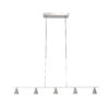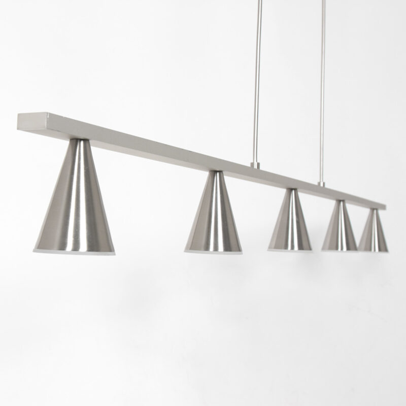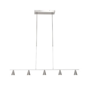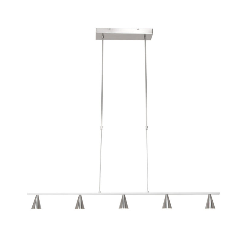 La lampe suspendue Vortex allie fonctionnalité et design moderne. Les cinq abat-jour en forme de funnel contiennent des modules LED fixes de 5 Watts chacun, avec une luminosité totale de 1100 lumens. La couleur de la lumière est réglable entre 2700 et 4000 Kelvin, te permettant de créer facilement l’ambiance souhaitée. Grâce au variateur tactile, tu ajustes l’intensité lumineuse directement sur le luminaire. Lors de l’installation, la lampe est réglable en hauteur de 85 à 145 cm. Avec une longueur de 120 cm, cette lampe est un ajout élégant aux tables à manger ou aux îlots de cuisine.