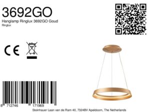 Le plafonnier Ringlux doré de Steinhauer apporte une touche chic et moderne à votre intérieur. Avec un diamètre généreux de 60 cm et un design flottant élégant, ce plafonnier devient un véritable point focal. Le module LED intégré offre une puissance lumineuse de 4000 lumens et a une température de couleur chaude de 2700 Kelvin. La hauteur est réglable entre 40 et 150 cm, ce qui vous permet d’ajuster la lampe facilement à votre espace. La fonction dimmable permet de régler l’intensité lumineuse selon vos désirs. Un ajout magnifique à la salle à manger, au salon ou au bureau. Livré avec une garantie fabricant de 2 ans.