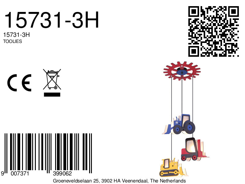 De plus, la lampe offre une liberté de choix en matière de source lumineuse (E14/max. 40), ce qui vous permet de déterminer l’intensité et la couleur de la lumière. Pour une efficacité énergétique optimale et une durabilité, nous recommandons d’utiliser des lampes LED. Créez avec la lampe suspendue Toolies une ambiance chaleureuse et accueillante, qui est non seulement pratique, mais qui sert également de bel accent décoratif dans la chambre d’enfant.