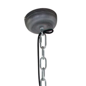 Suspension industrielle robuste de la série Bikkel, fabriquée en acier avec des éléments rugueux. L’abat-jour métallique en forme de dôme a un diamètre de 42 cm et une hauteur totale de 45 cm, y compris le bloc de transformation robuste. La lampe est réglable en hauteur jusqu’à un maximum de 150 cm lors de l’installation, ce qui la rend idéale au-dessus de la table à manger ou comme point focal dans le salon. Grâce au mélangeur intégré, la lumière est diffusée de manière agréable sans éblouissement.