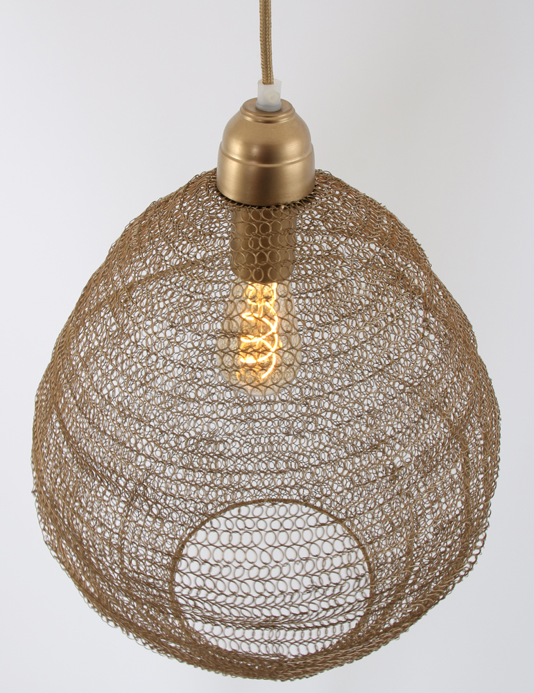 Avec son abat-jour métallique en mailles, cette suspension métal doré a la forme d’une petite ruche d’abeilles. Il est de couleur bronze doré, ce qui décore la pièce d’un aspect chaleureux et luxueux.