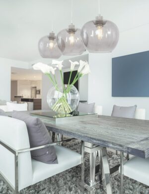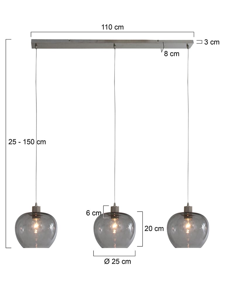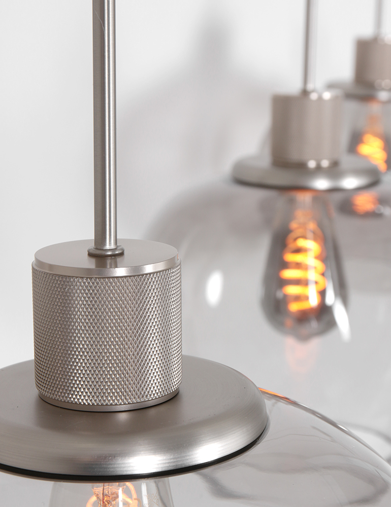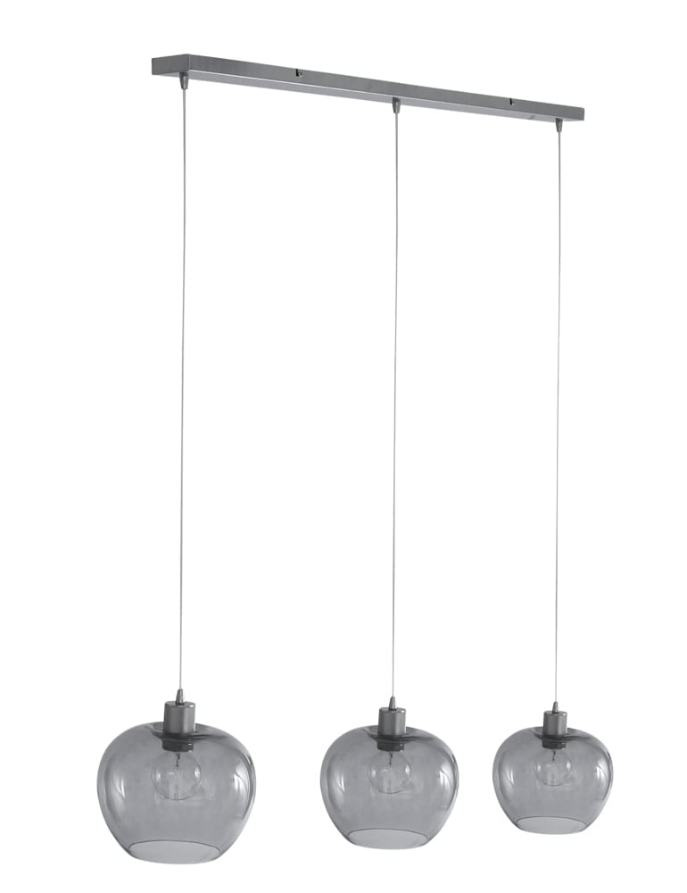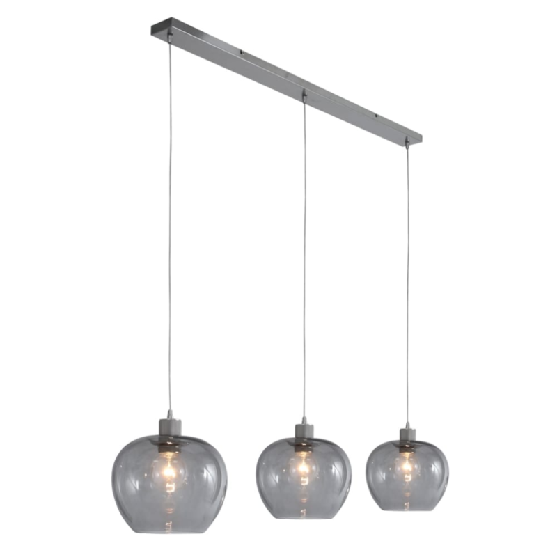 Aimez-vous les éléments élégants et stylés dans votre intérieur ? Cette suspension moderne à trois lumières en verre fumé est totalement contemporaine et s’adapte à presque tous les intérieurs. La lampe possède trois abat-jours en verre fumé joliment teinté, qui est à la mode. Cela est dû à la lumière féerique que la lampe émet lorsqu’elle est allumée. Avec un variateur externe, vous pouvez ajuster l’intensité de la lumière selon vos préférences. Complètement dans le style, le plafond est en acier brossé, qui a la même teinte grise que les abat-jours. Ainsi, cette lampe est véritablement un bijou au-dessus de votre table à manger !