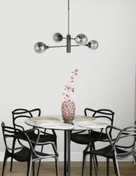 La suspension Constellation de Steinhauer possède quatre bras rotatifs avec des boules en verre fumé, chacune avec un culot E14 pour un effet lumineux chaleureux. De plus, un point lumineux supplémentaire avec un culot GU10 permet un éclairage ciblé. La finition métallisée noire mate, associée aux boules en verre, confère à la lampe une apparence raffinée et moderne. Idéale pour la salle à manger, le salon ou le hall en tant que déclaration design. La lampe est réglable en hauteur et est livrée avec une garantie fabricant de 2 ans.