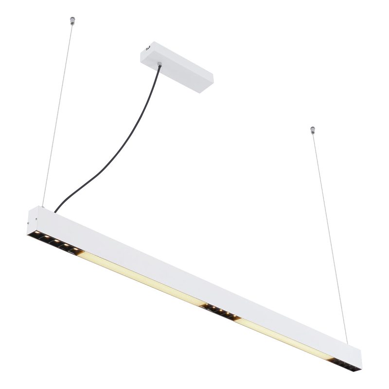 Enrichissez votre intérieur avec la élégante lampe suspendue Hodari, fabriquée en aluminium blanc épuré et en verre. Cette source de lumière allongée, qui peut pendre jusqu’à 1,2 mètre du plafond, offre 1300 lumens de lumière claire, parfaits pour un éclairage uniforme de votre table à manger. Changez l’ambiance en un clin d’œil grâce à la télécommande fournie, qui vous permet de modifier la couleur de la lumière de blanc chaud à blanc froid et de dimmer la luminosité. Ce qui rend cette lampe suspendue unique, c’est la fonction de rétroéclairage en RGB, vous permettant de créer l’ambiance souhaitée.
