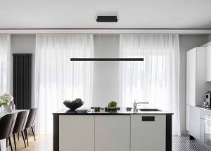 Présentez votre intérieur avec le plafonnier élégant et chic DENTSY, conçu pour un éclairage puissant et lumineux. Cette lampe impressionnante, fabriquée en métal noir mat et en aluminium, apporte une touche d’élégance moderne à chaque espace. Grâce à sa forme rectangulaire, elle est idéale pour être placée au-dessus des tables à manger ou des espaces de travail. Avec l’utilisation du variateur tactile, vous pouvez personnaliser facilement la luminosité, tandis que la fonction mémoire intégrée se souvient de votre dernier réglage. Profitez de la répartition harmonieuse de la lumière de 3870 lumens qui permet à votre pièce de baigner dans une lumière agréable et brillante avec une température de 4000K. De plus, la lampe mesure 1200 mm de long et 90 mm de large, un ajout enrichissant à votre design intérieur.