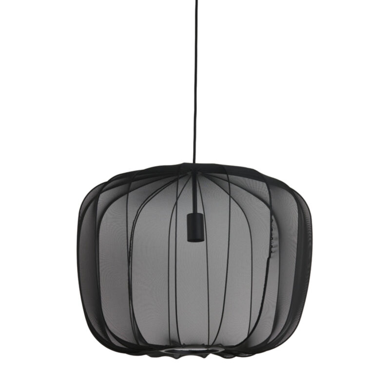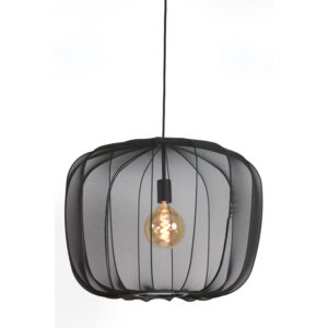 La lampe suspendue Plumeria de Light & Living combine une apparence rustique avec une forme de filet rond noir. Cette lampe à un point de lumière est idéale pour les salles à manger, les chambres et les salons. La construction textile offre un look Japandi et raffiné. La douille E27 permet un remplacement facile de la source lumineuse. Ajoutez une touche élégante à votre intérieur pour une ambiance unique.