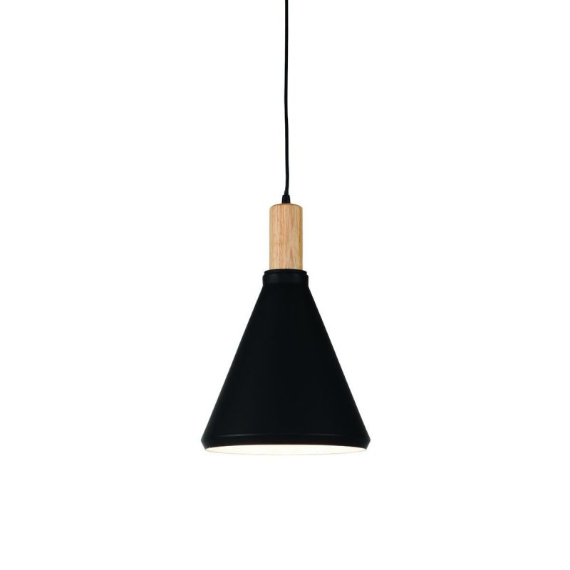 Lampe suspendue en bois/métal naturel/noir L de It’s About RoMi Melbourne. Ajoutez une touche scandinave à votre salle à manger, hall, chambre ou salon. Convient pour un culot E27 et est résistant à la poussière (IP20). Source de lumière non incluse. Pour une ambiance moderne et élégante à la maison.