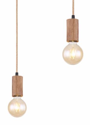 Suspension noir/naturelle 3 lumières bois/corde de chanvre Globo Frida