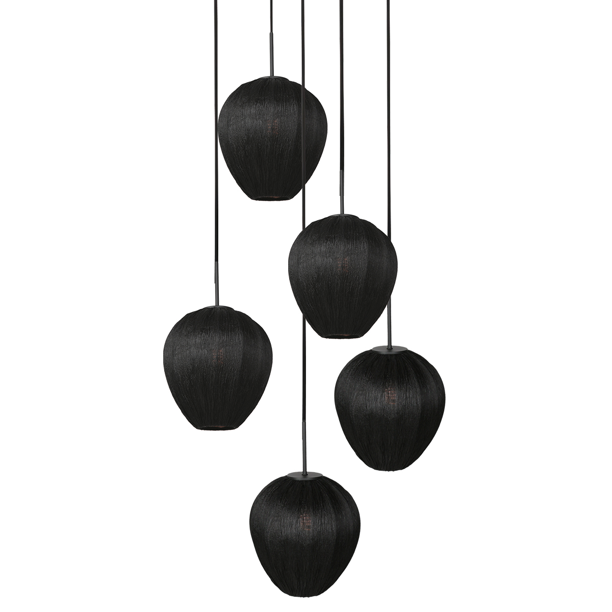 Suspension noire 5 lumières pour vide avec abat-jour en lin Mexlite HaloSwap